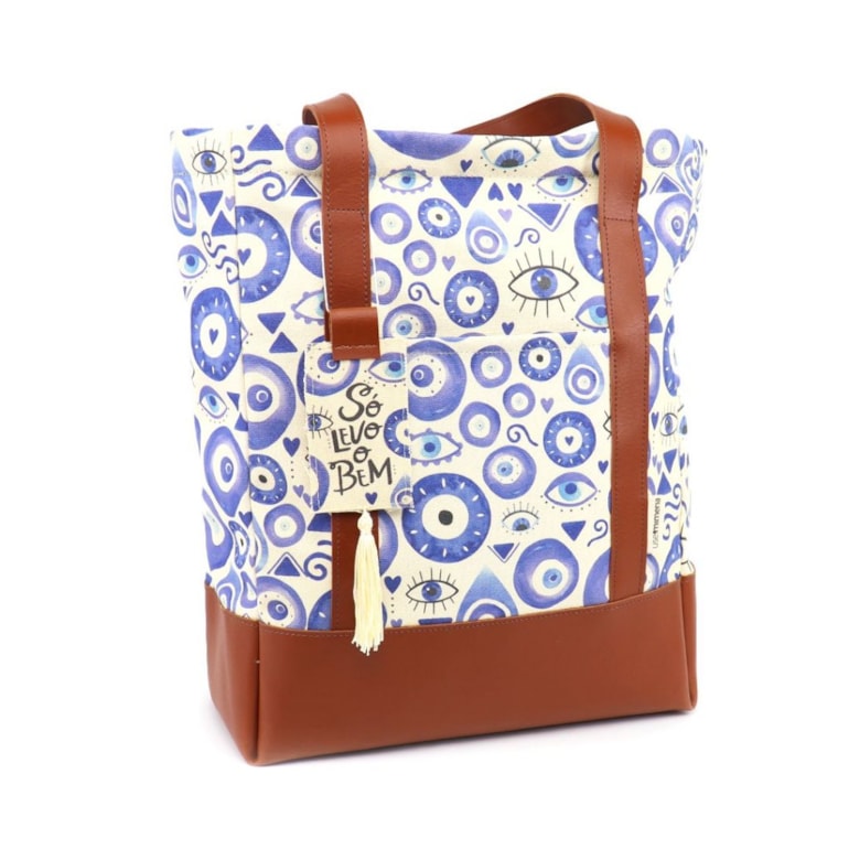 Com a Bolsa Sacola Olho Grego você pode levá-la as compras, no trabalho, cursos, faculdade e fazer tudo mais o que você precisar! Produzida com materiais de altíssima qualidade, ela tem um design super estiloso e impecável e conta com uma estampa belíssima de diversos olhos gregos sobre um fundo cru. É tudo o que você precisava, não! Combine com outros produtos da linha. Use Mimeria!
