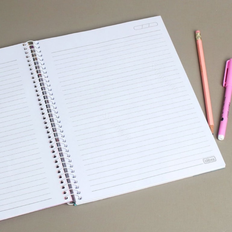 Super completinho, conta com 80 folhas pautadas distribuídas em uma matéria, sua capa é dura e ele possui acabamento em espiral branca por toda a sua lateral, é o mimo que voc~e precisava!