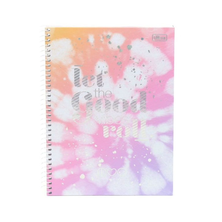 - Caderno Universitário Good Vibes Tie Dye Rosa 80 Folhas;