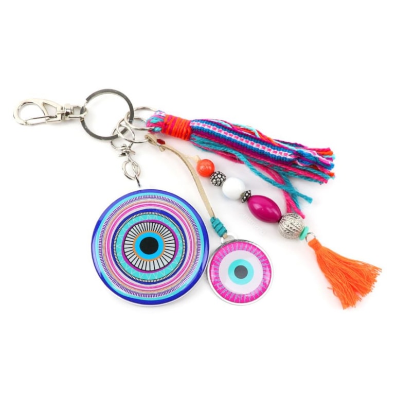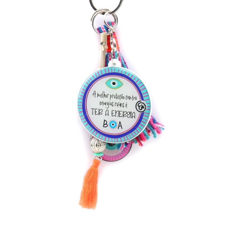 O Chaveiro Olho Enregia traz uma argola de metal para colocar suas chaves e um ganchinho bem prático para pendurar no seu acessório preferido. Vai ficar lindo pendurado na sua bolsa, sacola ou mochila. É perfeito para presentear para todas as amantes das boas energias como mães, tias, irmãs, amigas, primas, colegas....