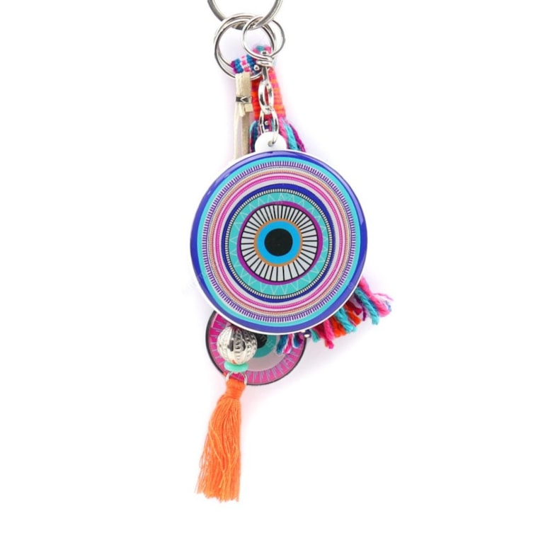 O Chaveiro Olho Energia é lindo! Você organiza todas suas chaves e dá um toque especial para sua bolsa ou mochila. Com o formato da tag redonda, esse chaveirinho traz a estampa de uma mandala maravilhosa nas cores aul, verde, rosa e amarelo e um Olho Grego bem no centro. Símbolo de sorte, proteção, paz e energias positivas, o Olho Grego é considerado um talismã para muitos.
