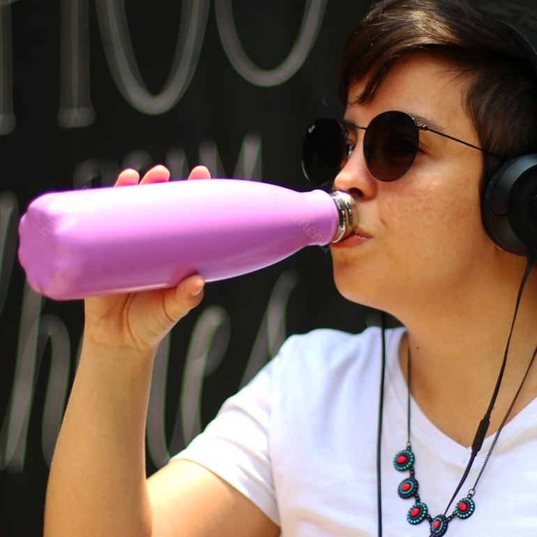 A Garrafa Térmica de Inox Parede Dupla 500 ml Grey Lilás é poduzida em aço inoxidável, com tecnologia de ponta. A sua parede dupla permite isolamento a vácuo e é hermética, dessa forma o fíquido fica isolado do ambiente externo, mantendo a temperatura. Além disso é livre de BPA – Bisfenol A), sem condensação e resistente à corrosão e oxidação, e tem capacidade para 500 ml. Pode conservar bebidas frias por até 24 horas e bebidas quentes por até 12 horas.