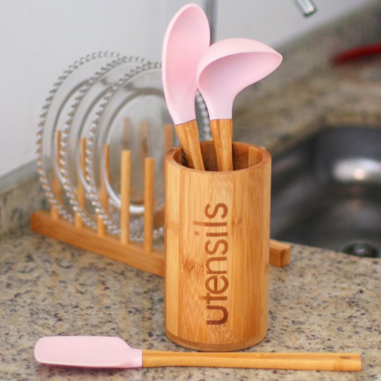 O Kit de Utensílios de Silicone com Cabo de Bambu Soft Color 3 Peças Rosa é simplesmente lindo. Ele vai deixar a sua casa cozinha ainda mais bonita e trazer total praticidade para a sua rotina!