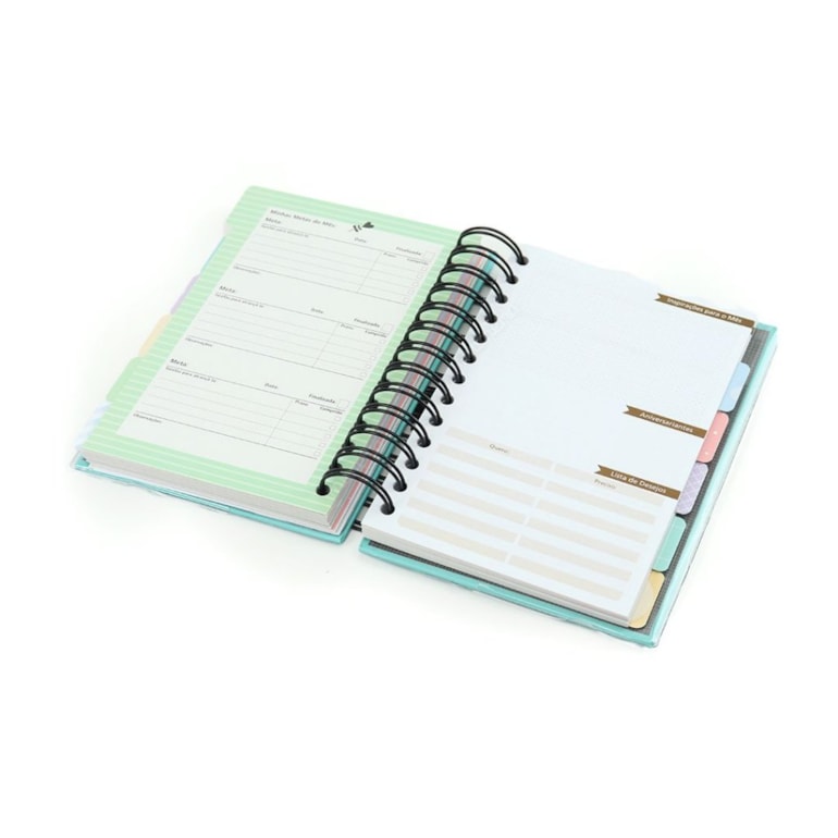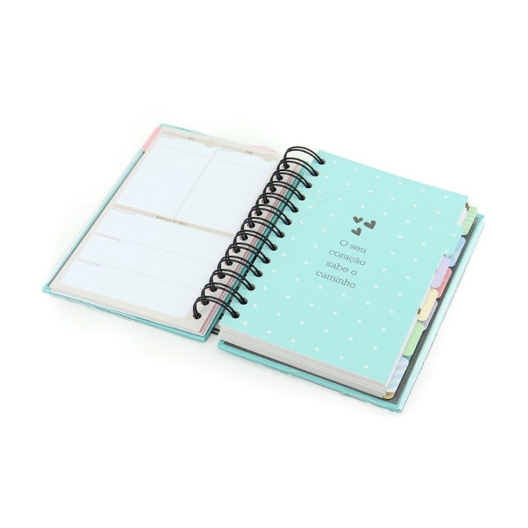 Com fechamento em elástico, espiral e capa protetora de plástico, este planner é super resistente e tem um ótimo acabamento. Além disso, é super completo e tem tudo que você poderia querer em uma ferramenta deste tipo: 12 divisórias coloridas e estampadas com frases inspiradoras - uma para cada mês do ano -; folhas para planejamento anual, mensal e semanal; páginas para monitoramento de hábitos; calendários, folhas para controle financeiro e muito mais!