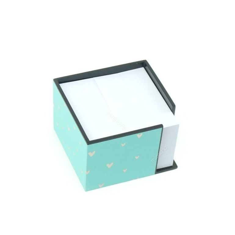 O Porta-Lembretes Decorado Corações Holográficos tem linda caixinha de MDF estampada em verde água com vários corações. Perfeito para você usar e decorar sua mesa com muito charme!