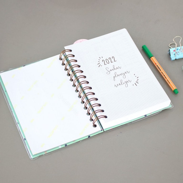 A Agenda 2022 Diária Poá Verde-Água Média é simplesmente linda! Um super mimo para você começar 2022 com o astral lá em cima!