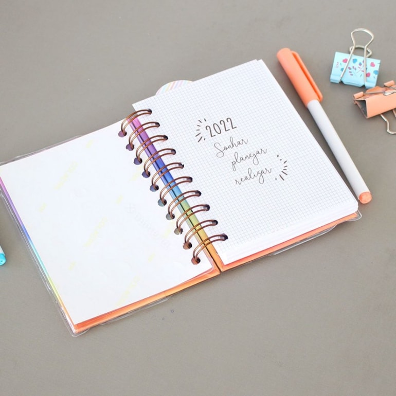 A Agenda 2022 Diária Tie Dye Pequena é linda e prática. Perfeita para você anotar as atividades e compromissos do dia a dia!