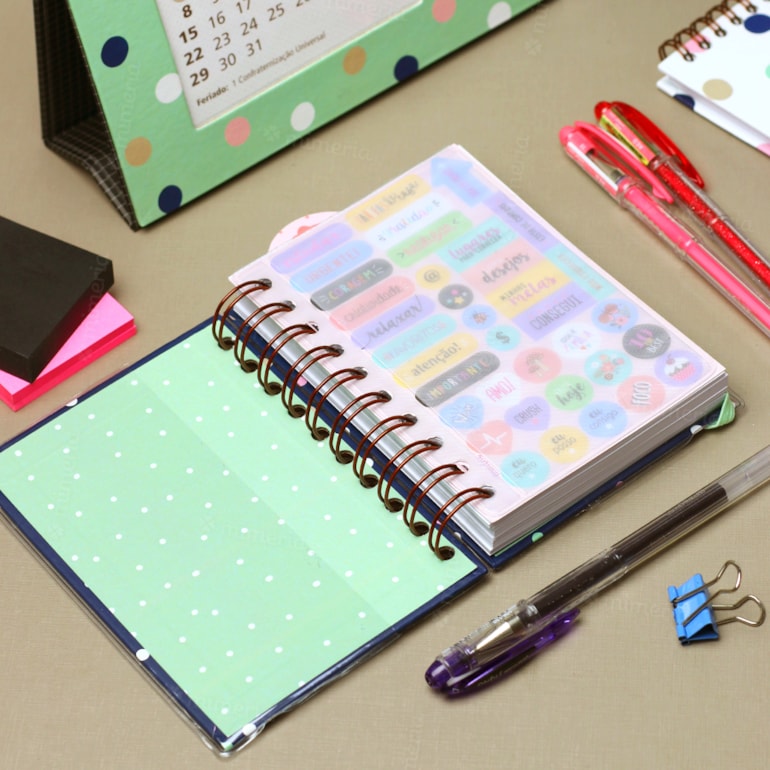 Agenda 2023 Diária Poá Pequena tem miolo completo e compacto, com páginas para dados pessoais, calendário, metas e agenda diária. Ideal para anotar atividades e compromissos pessoais, profissionais e acadêmicos.