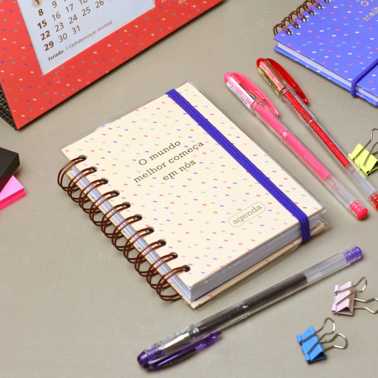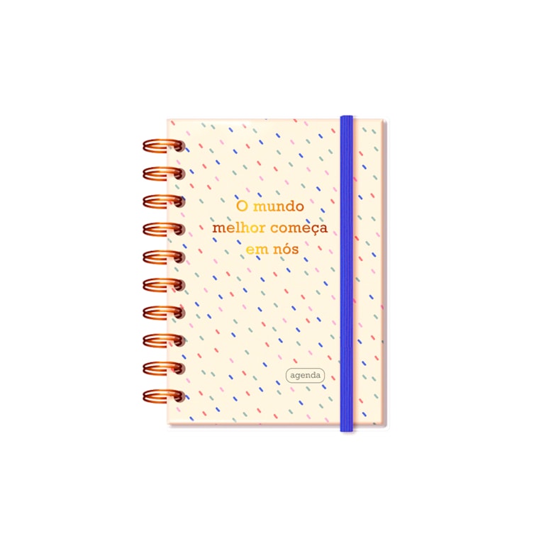 A Agenda 2023 Diária Riscadinho Pequena é tão incrível que cabe tranquilamente dentro da sua bolsa! Ela é leve e prática de carregar, e vem inteiramente trabalhada com uma estampa de riscos coloridinhos com efeito “borrado” sobre um fundo rosa clarinho e com a frase: “O mundo melhor começa em nós”. É o mimo perfeito para te ajudar a otimizar a sua rotina!