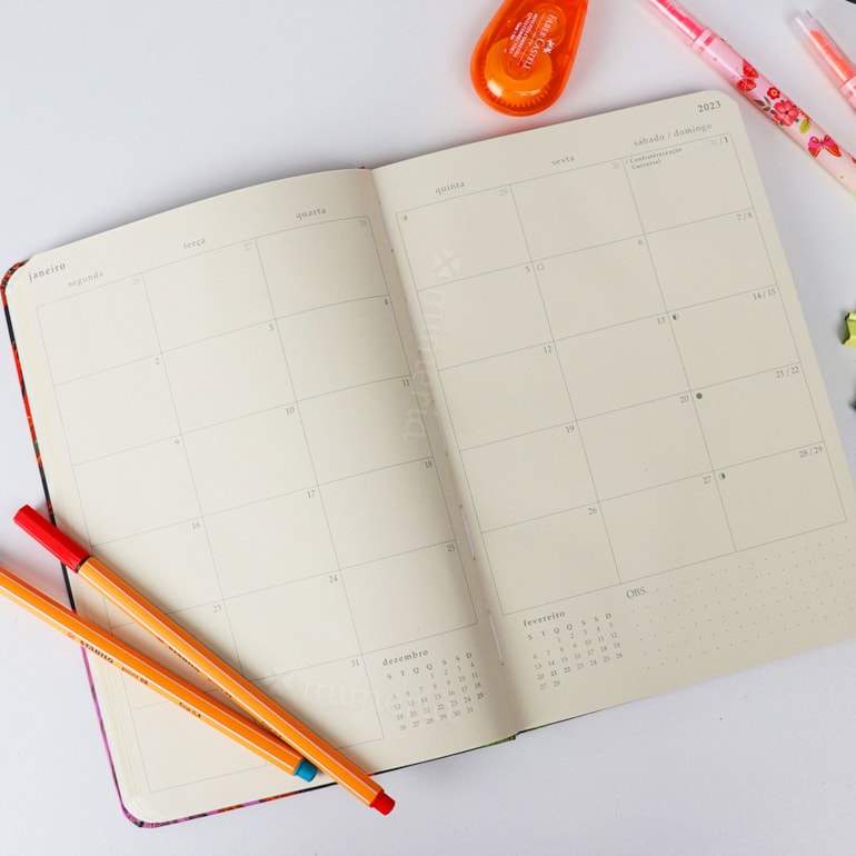A Agenda 2023 Planner Semanal Anotações Datado Onças Verde Média vem com um miolo sequencial estruturado primeiro pelo calendário do mês que está sendo retratado, depois por uma página com espaço para os sete dias da semana seguida de uma folha pautada ao lado, espaço esse que é ideal para fazer anotações detalhadas! É o modelo perfeito para quem gosta de anotar os nomes dos compromissos, e detalhar de maneira livre momentos e afazeres importantes da semana!