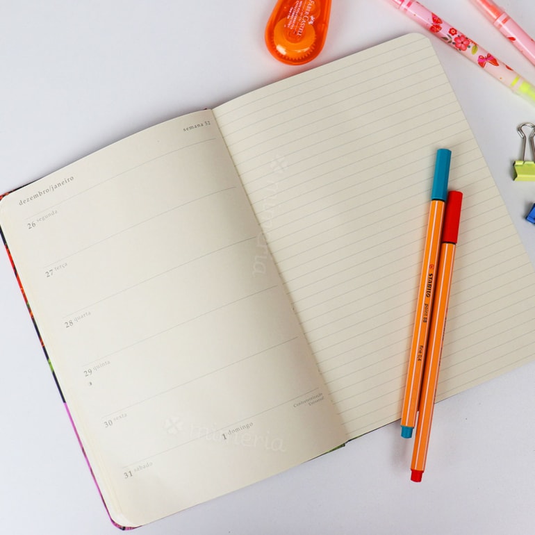 Charmosa, autêntica, e cheia de estilo, vem composta por 160 páginas em papel pólen 80g/m² de excelente qualidade! Possui vários campos de planejamento, dentre eles: o campo visão anual e mensal, planejamento anual, controle financeiro, folha para preenchimentos de dados pessoais, objetivos para o ano, e calendário mensal. Tudo isso além de folhas pautadas e folhas pontilhadas!