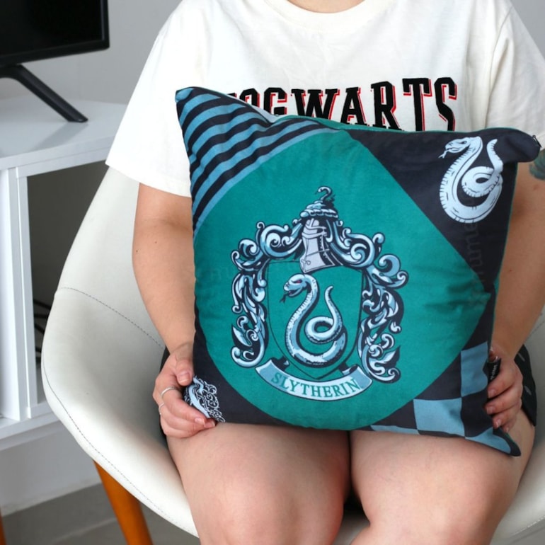 Pode até ter demorado uma vida, mas a sua cartinha de Hogwarts chegou de uma forma diferente! Com a Almofada Harry Potter Sonserina Fibra Veludovocê vai se sentir um verdadeiro membro de Hogwarts, além de se manter sempre protegido e confortável, do ladinho da sua casa bruxa favorita!