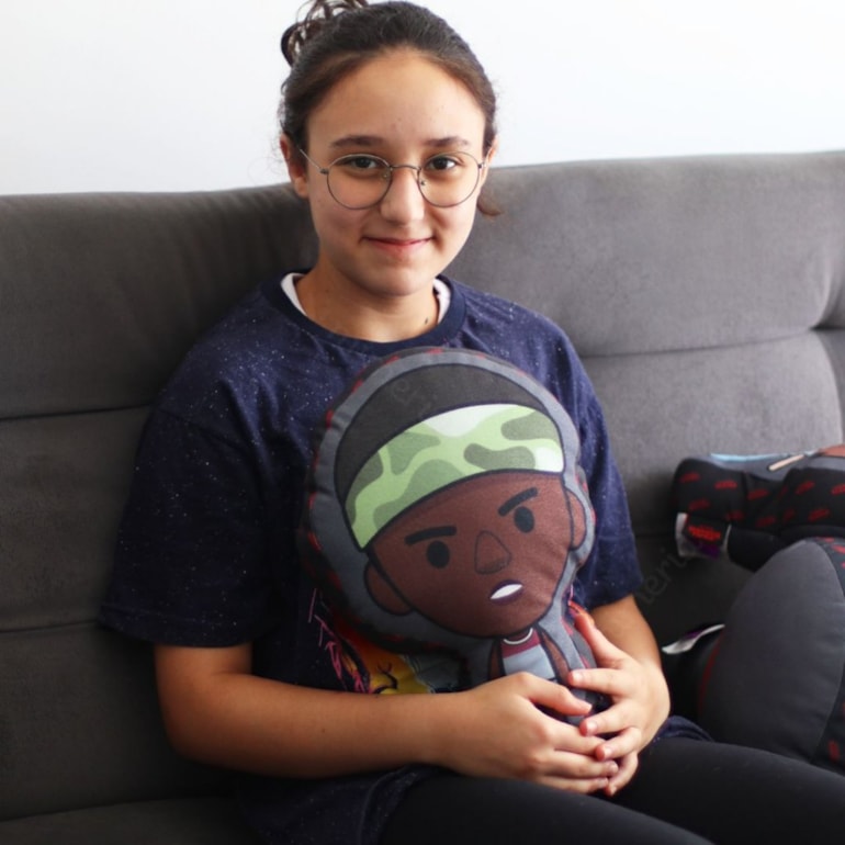 “Você é legal e diferente, e você é super inteligente”! Bem se vê que o dono dessa frase é um amigão com um coração enorme né?! Com a Almofada Stranger Things Lucas Fibra você vai estar do lado do amigo mais fofo e leal de toda a série!