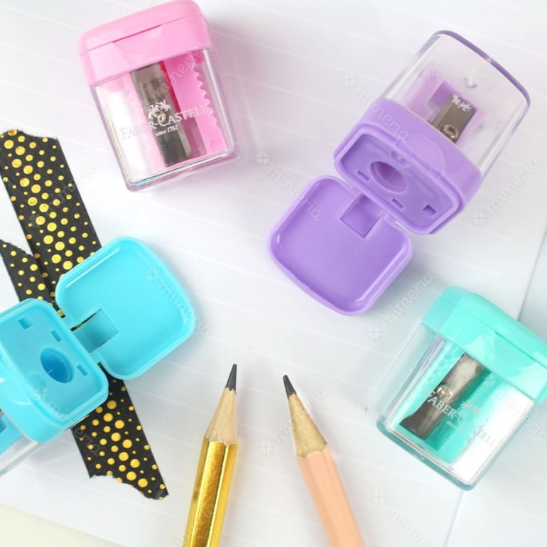 O Apontador Faber-Castell com Depósito Mini Box Lilás Pastel é um verdadeiro mimo, com seu tamanho mini!