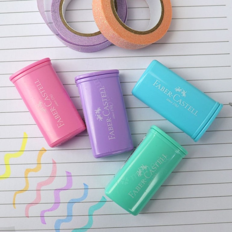 Garanta o seu Apontador Faber-Castell com Depósito Triangular Rosae alie beleza e qualidade. Aproveite e conheça os outros itens da coleção e seus lindos tons pastéis.