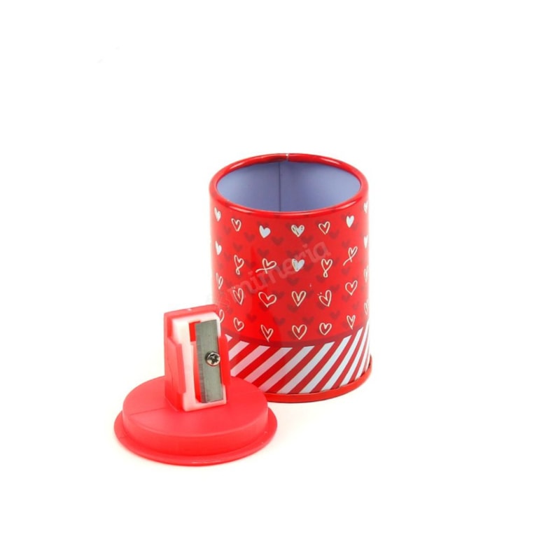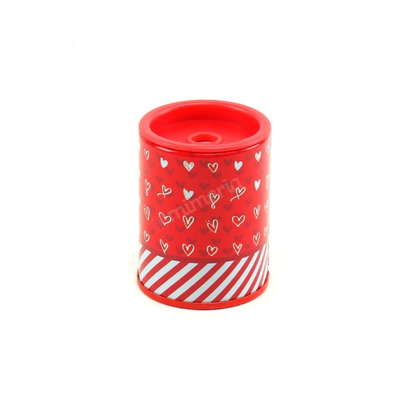O Apontador Metálico Coração Love Vermelho tem estampa lindinha de corações branco em fundo vermelho. Perfeito também para decorar sua mesa de trabalho, estudos e afins.