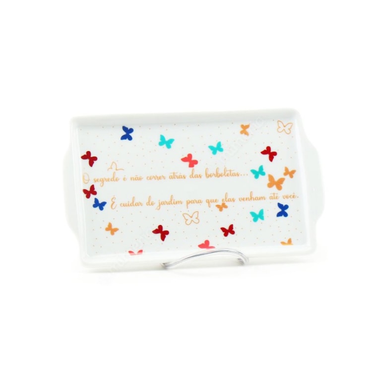 A Bandeja de Porcelana Borboleta Retangular é ótima para combinar com outros mimos da mesma coleção e deixar sua casa ainda mais aconchegante.