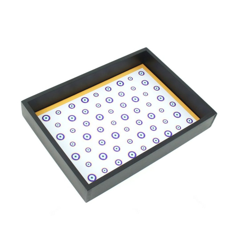 A Bandeja Retangular Decorada Olho Grego é absolutamente perfeita! Ela é o mimo ideal para os amantes de uma decoração com um ar místico e inspirada em olho grego!