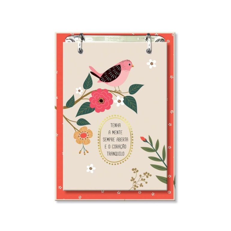 O Bloco de Mesa Decorado Pássaros tem estilo prancheta e conta com capa dura estampada com um lindo pássaro, flores e a frase: “Tenha a mente sempre aberta e o coração tranquilo” em fundo rosa. Um verdadeiro charme!