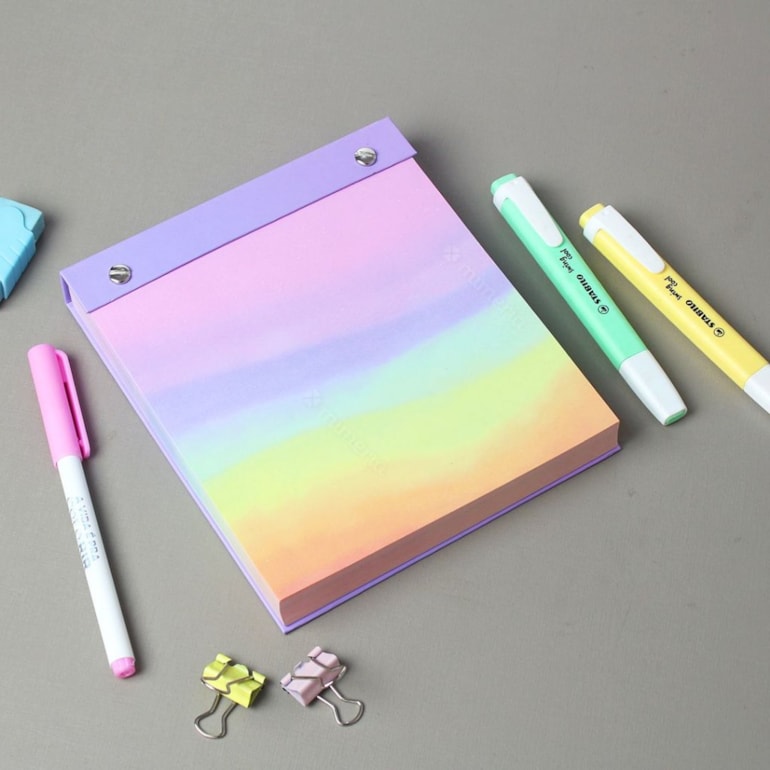 O Bloco Office Pinos Tie Dye era exatamente o que você precisava para deixar em cima da sua mesa de trabalho enquanto você anota todos os afazeres, lembretes e notas importantes do dia!