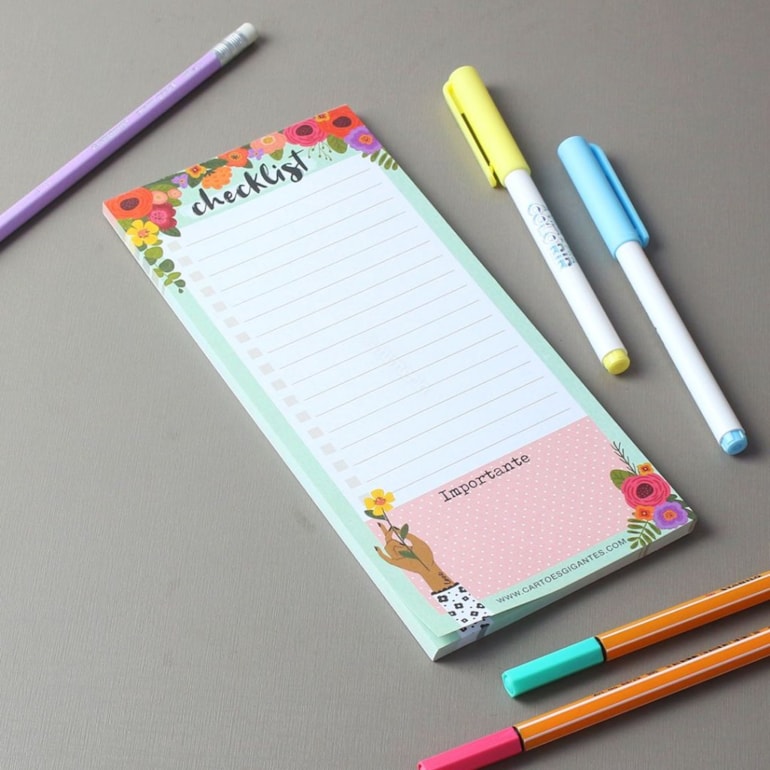Prático, este bloco vem com folhinhas para fazer checklist e anotar coisas importantes. Ideal para colocar na porta da geladeira e ter sempre no campo de visão suas listas de compras, tarefas e muito mais!