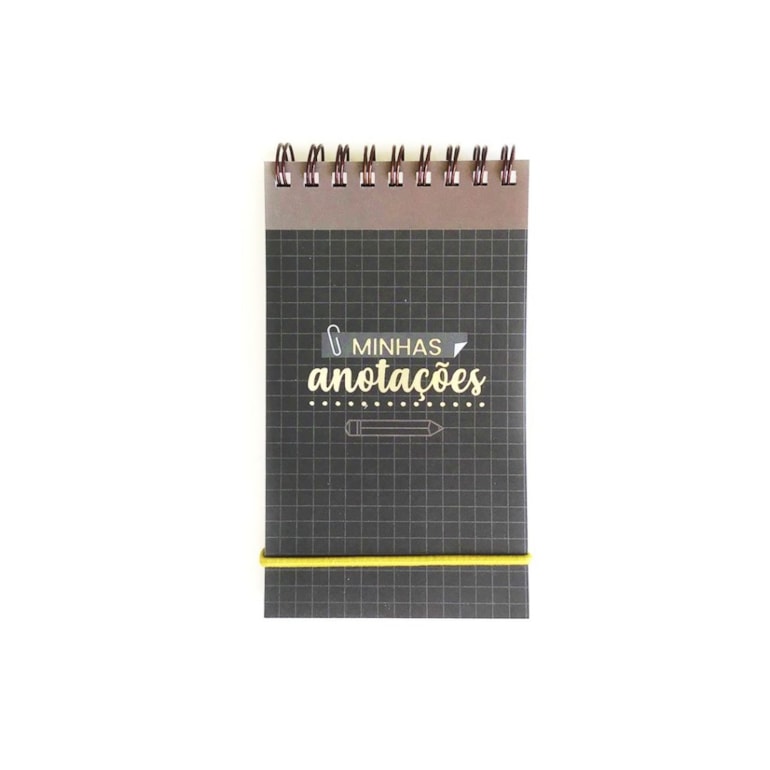 O Bloco Minhas Anotações Urban vem todo estampado com um quadriculado em preto e cinza e conta com a frase “Minhas anotações” em dourado centralizada na sua capa. É um verdadeiro mimo!