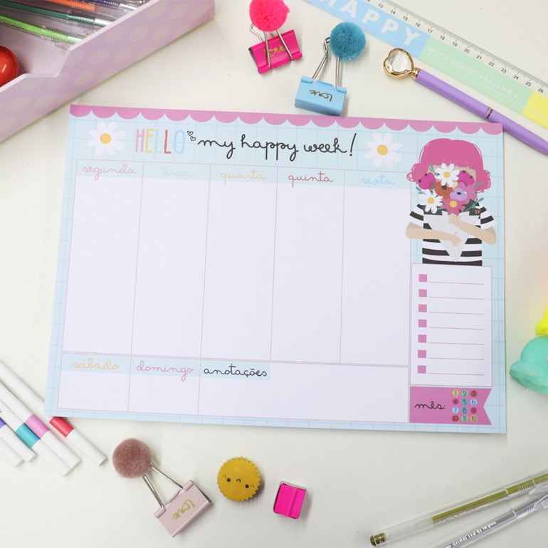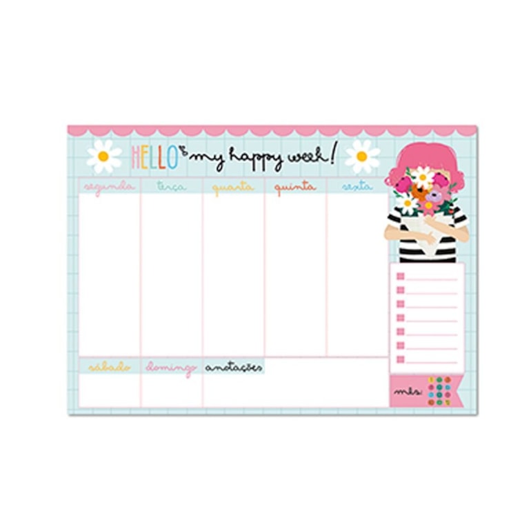 - Bloco Planner de Mesa Semanal Happy Buquê;
