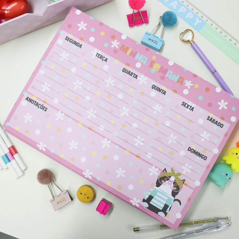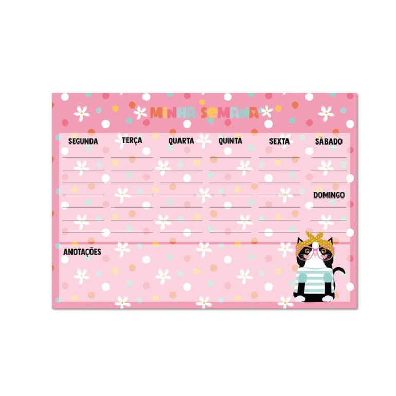 Produzido em papel, este bloco conta com 40 folhas e vem estampado com sete quadrinhos para organização da rotina semanal, além de contar com espaço para anotações gerais. Tudo o que você poderia querer!