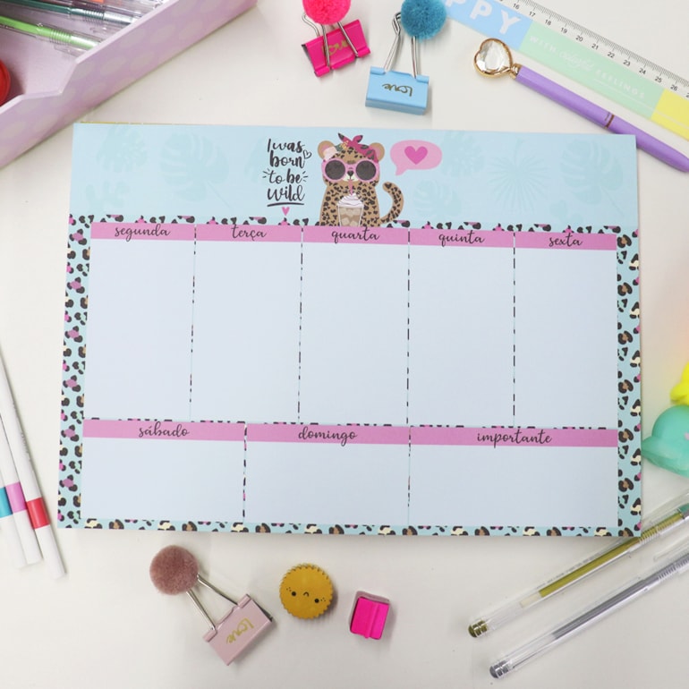 O Bloco Planner de Mesa Semanal Happy Oncinha é um mimo em forma de planner! Perfeito para decorar seu espaço com muito charme!