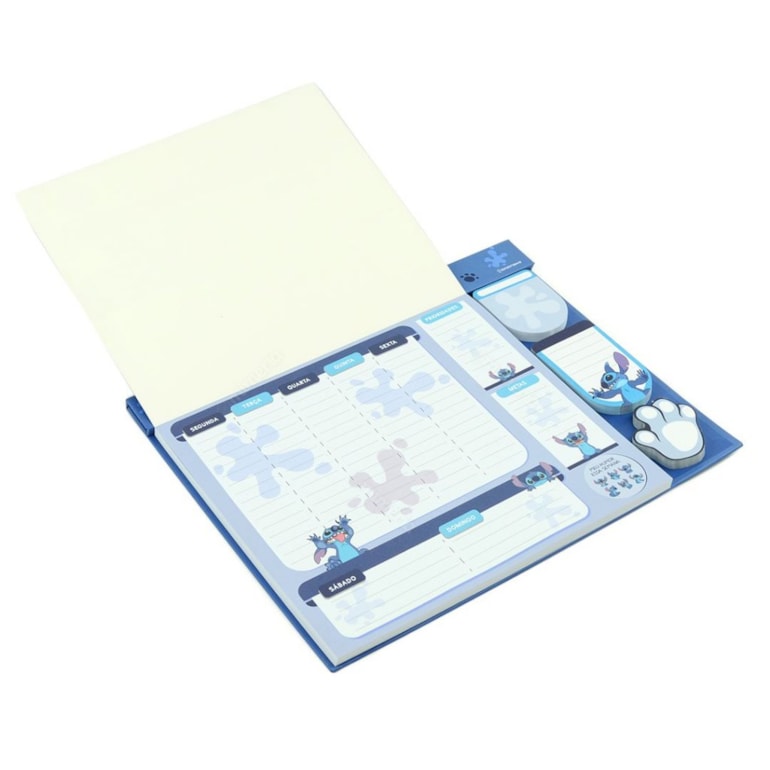 Deixe o Stitch te ajudar a nunca mais perder nenhum compromisso! Com o Bloco Planner Semanal Disney Stitch você consegue organizar toda a sua semana, e ainda ter campos para prioridades, metas, bloquinhos de anotações para colar e muito mais. Também vem com 3 páginas de adesivos para você colar no seu planejamento, deixando a tarefa de se planejar mais fácil e divertida!