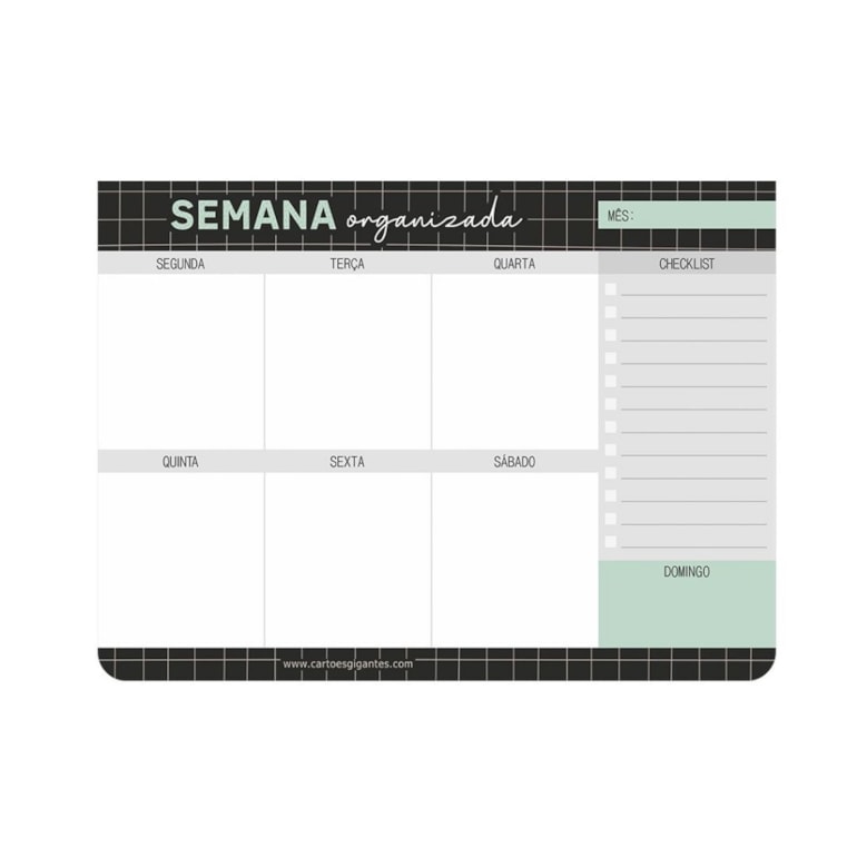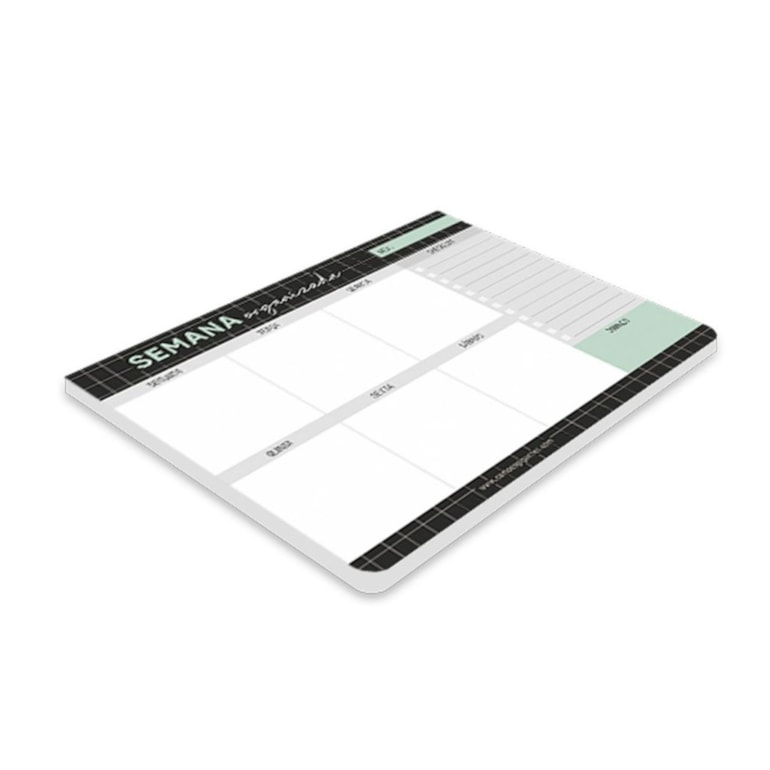 O Bloco Planner Semanal Grid vem quadriculado em preto e branco com detalhes em cinza e verde menta, ele é lindíssimo e fica ainda melhor quando combinado com outros itens da sua coleção!
