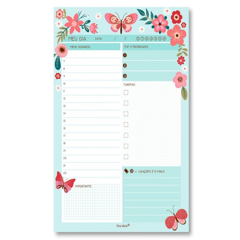 O Bloco Planner de Mesa Tarefas do Dia Borboletas é ideal para anotar as tarefas, compromissos e demais atividades diárias, deixando seu dia a dia muito mais organizado.