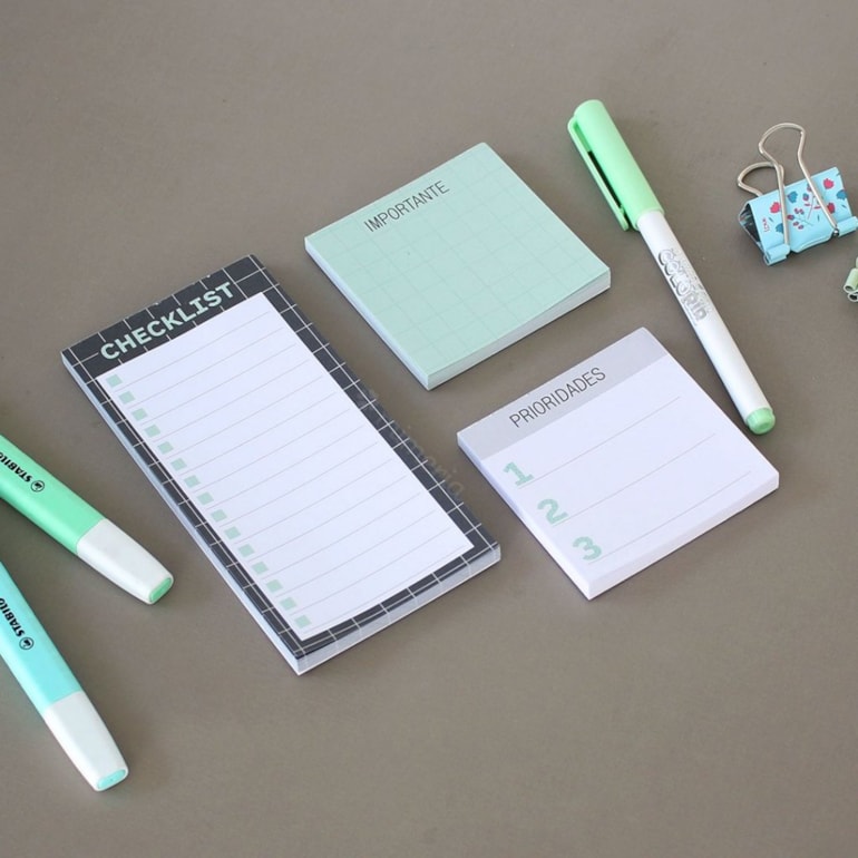Completinhos, eles contam com 3 blocos de 50 folhas não adesivas de papel offset cada! São ideais para serem deixados do seu lado ao longo do dia, enquanto você anota todos os seus afazeres para não esquecer de nadinha!