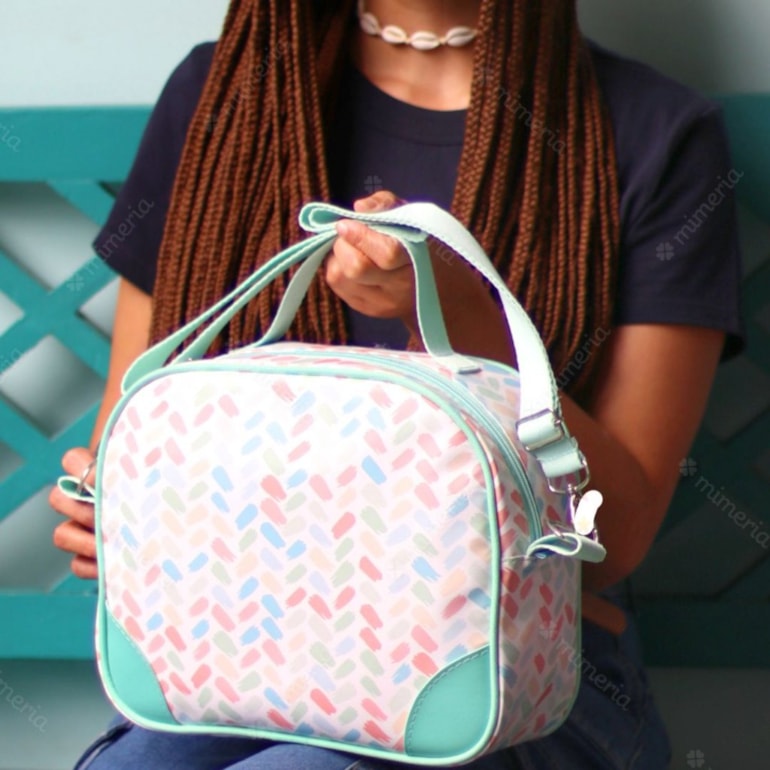 A Bolsa Maleta Utilitária Tricô Candy vem com uma estampa super original de pequenos “tecimentos” em múltiplos tons de candy colors sobre um fundo branco, ela também conta com um acabamento lindo em tom de verde meta, é tudo o que você poderia querer!