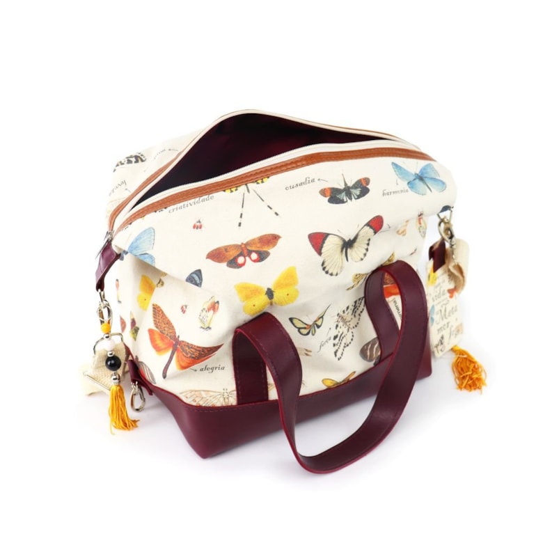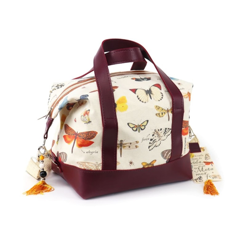 Cheia de simbologia e trabalhada nas metamorfoses, a Bolsa Malinha Borboleta é perfeita para todas as situações! Ela é ótima para levar suas roupas de academia, livros da facul, e até para passar os finais de semana na casa do crush! Ela é incrível e vem trabalhada com uma estampa de borboletas coloridinhas e cheias de significado, tudo sobre um fundo cru com detalhes em bordô. É o ápice do bom gosto e praticidade em uma peça só!