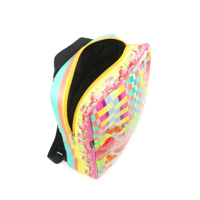 A Bolsa Mochila Estampada Bem Me Quero Quadriculado é belíssima e vem estampada em um lindo padrão de quadriculados ultra coloridinhos, flores, e listras coloridas pelas suas laterais, ela possui seu fechamento em zíper, tem alça regulável e ainda vem com um bolso com fechamento em zíper na parte externa das costas, é exatamente o mimo que você precisava para colorir seus dias!
