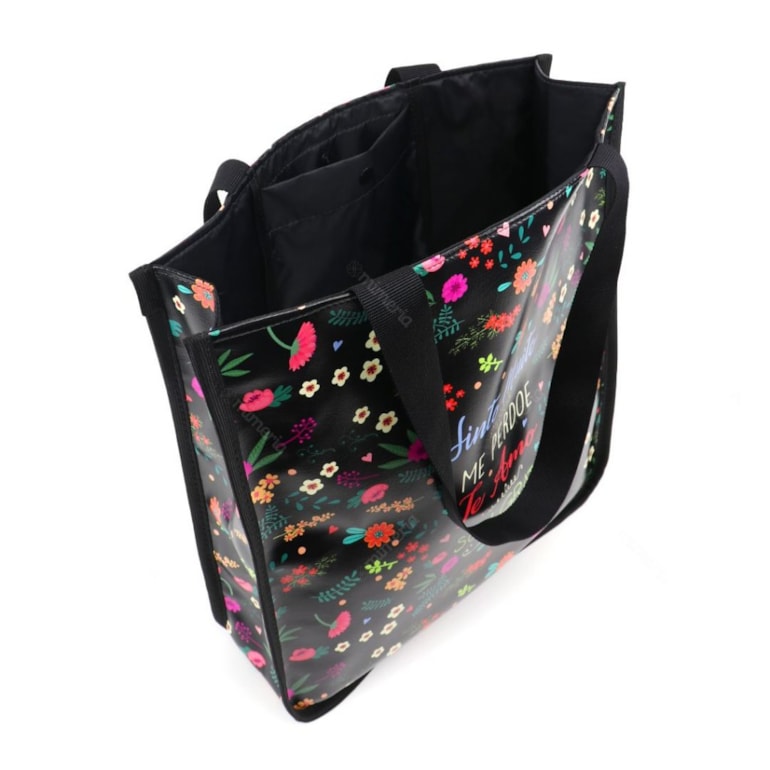 Com estampa maravilhosa, você vai se encantar por ela. A Bolsa Sacola Sacola Bag Hoponopono é estampada com cor preta cheia de florzinhas coloridas muito lindas e no centro traz as mensagens inspiradores: "Sinto muito, Me perdoe, Te Amo e Sou Grato", baseado na filosofia havaiana de limpar da mente e do coração todos os sentimentos negativos que carregamos no dia a dia. Não é maravilhosa?