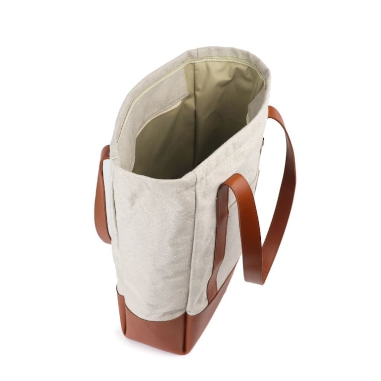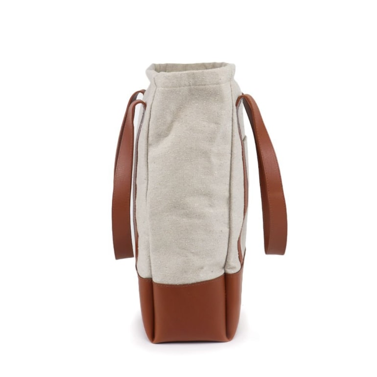 Produzida em lona de algodão da mais alta qualidade, vem inteiramente trabalhada na cor cinza clara, e conta com detalhes e acabamentos em um belíssimo tom de marrom! Ela tem fechamento em zíper, bolso externo para celular e pequenos objetos, e revestimento interno. É um mimo super autêntico e cheio de exuberância!