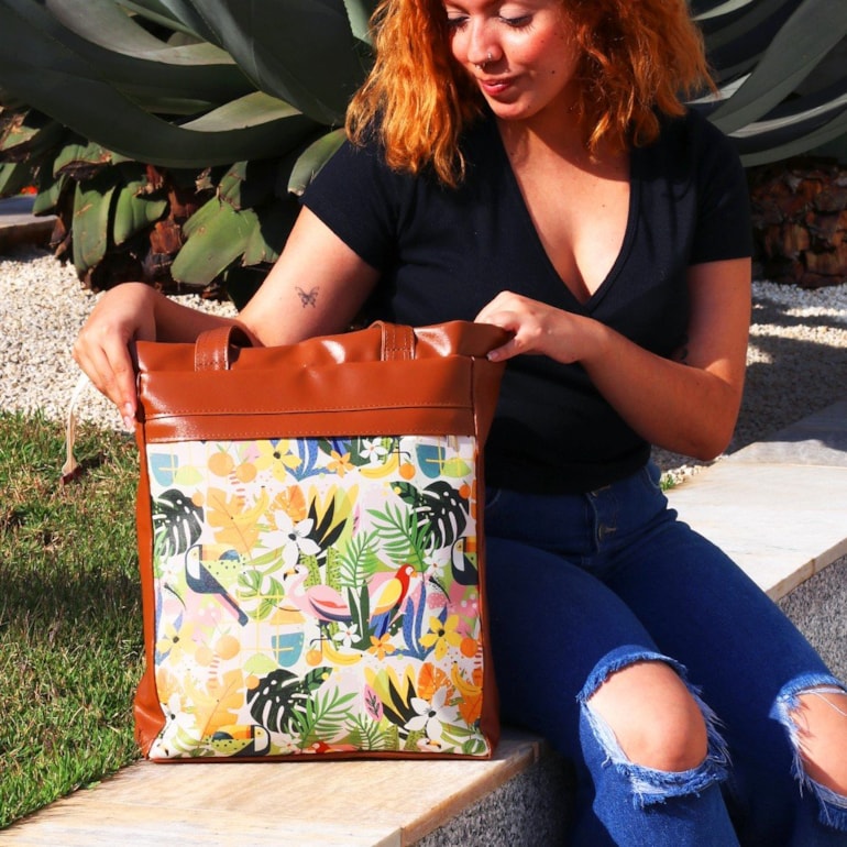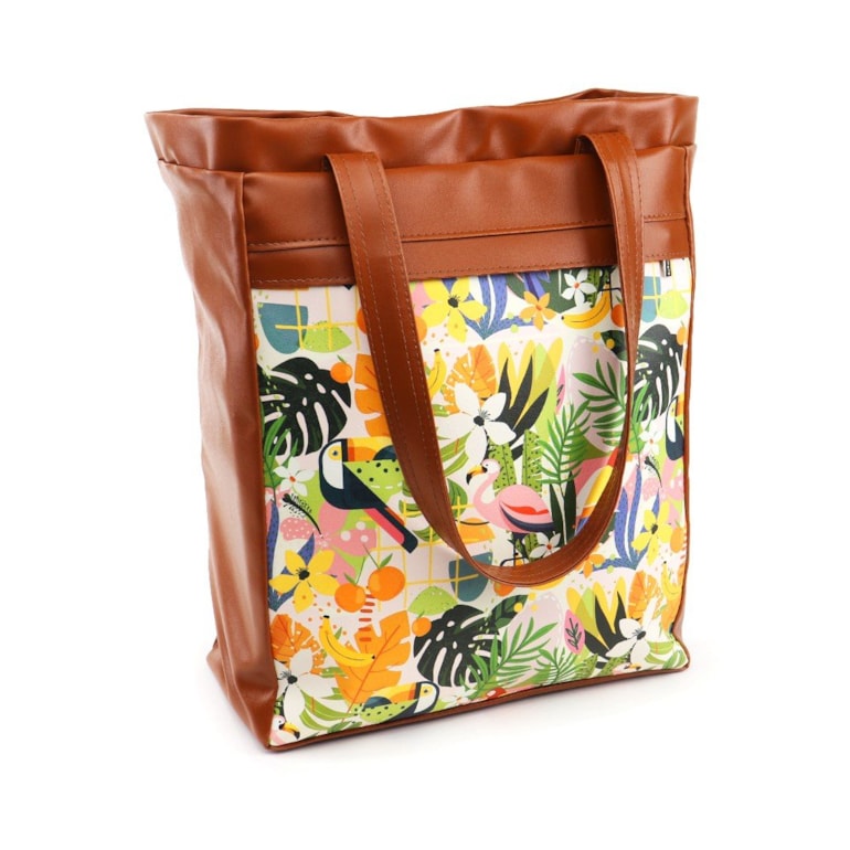 A Bolsa Sacola Pro Tropical tem em tem um um lindo tom de caramelo, contrastado com uma estampa super charmosa de aves, folhas, flores e frutas, sobre um lindo fundo branco! Ela tem uma tendência toda naturalzinha, e vai te conquistar com toda essa vibe tropical! Puro charme! Ela é perfeita para te acompanhar em passeios, no trabalho, na hora de fazer compras, e onde mais você precisar!
