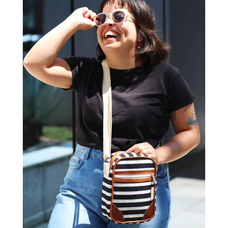 Dona de uma estampa sóbria e exuberantemente clássica, a Bolsa Shoulder Bag Listras Pretas é tudo o que você precisava para passeios esporádicos nos mais diversos lugares!