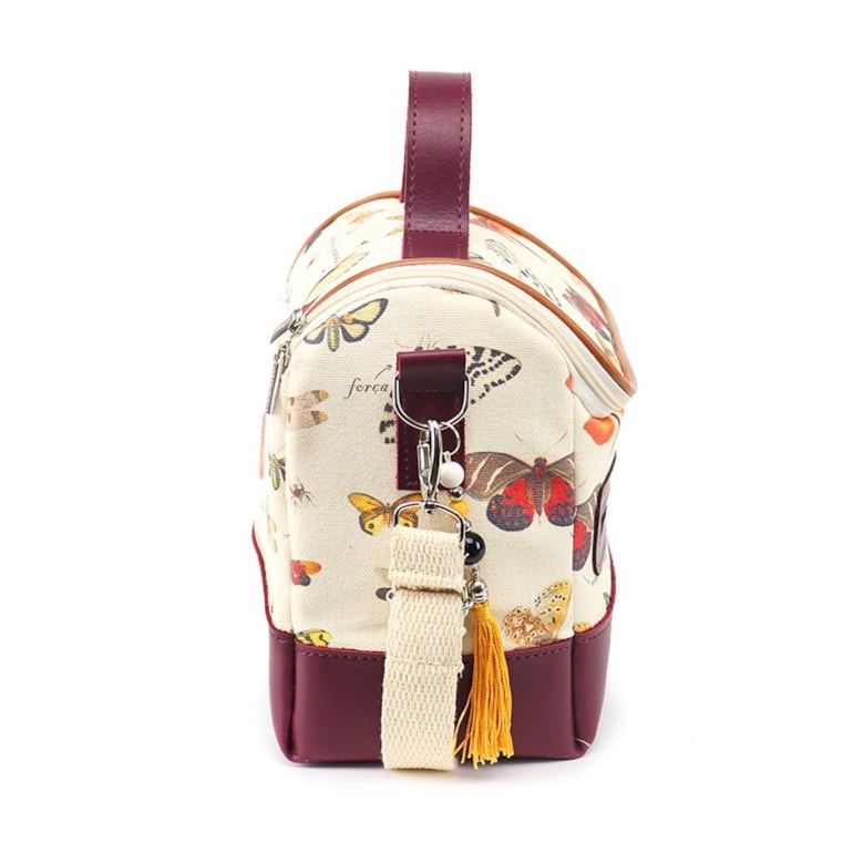 Linda e despojada, vem produzida em lona de algodão com detalhes em tecido sintético de cor bordô, ela também conta com uma alça de mão reforçada, e uma alça transversal regulável e removível que garante maior conforto e praticidade na hora de carregá-la!
