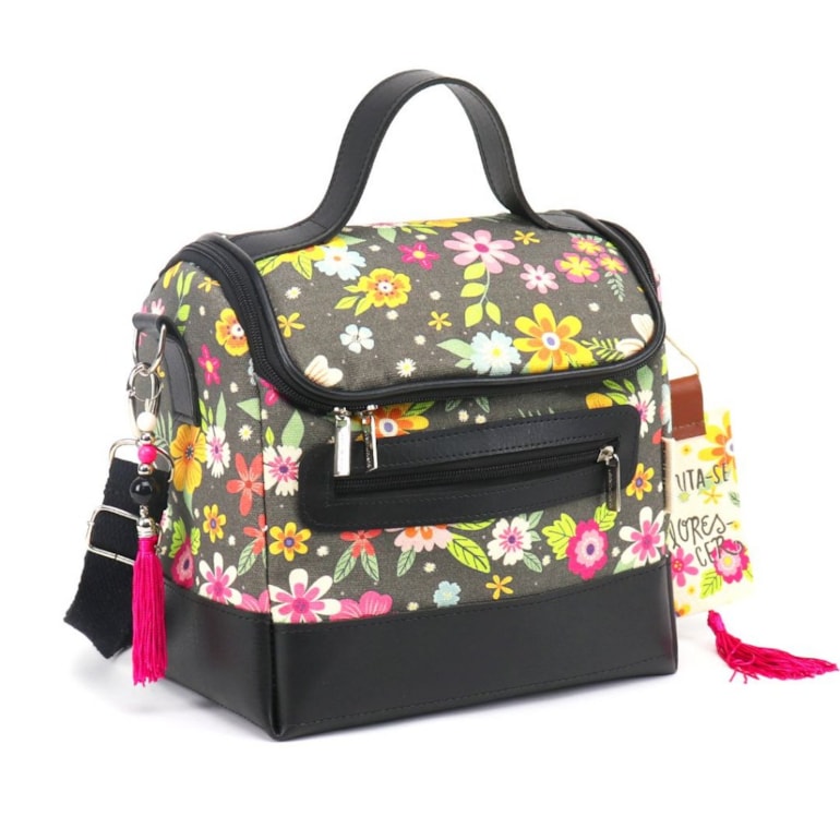 A Bolsa Térmica Baú Floral vem com um bolso frontal com fechamento em zíper, um penduricalho rosa super fofo, e uma tag falando sobre a necessidade de “se permitir florescer”! Ela é mais do que linda e vem estampada com belas e coloridas flores sobre um fundo preto lavado, tudo isso junto ao contraste de detalhes em tecido sintético em um tom de preto intenso, é exatamente o que você necessitava para almoços mais dinâmicos!