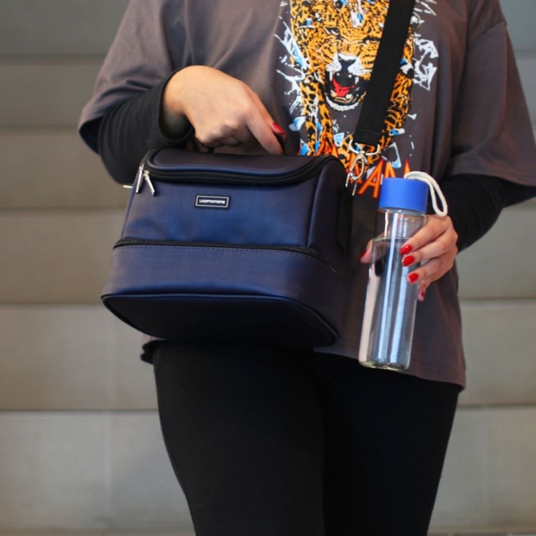 A Bolsa Térmica Duo Azul Marinho é um verdadeiro sonho de consumo para todas as marmiteiras e marmiteiros de plantão! Ela é incrível, compacta, tem dois andares, e ainda mantém seus alimentos conservados por muito mais tempo. É literalmente o mimo perfeito para você!