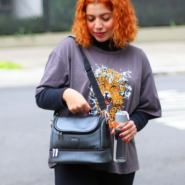 A Bolsa Térmica Duo Cinza Chumbo é simplesmente maravilhosa! Ela é belíssima, compacta, tem dois andares, e ainda mantém seus alimentos conservados por muito mais tempo. É literalmente o mimo dos seus sonhos!