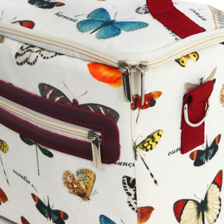 A Bolsa Térmica Move Borboleta conta com alças de mão reforçadas, e uma alça transversal regulável e removível. Ela ainda conta com uma estampa belíssima de borboletas coloridas e cheias de significado sobre um fundo cru e acabamentos em vinho, uma junção de boho chic com um toque de leveza e criatividade! Perfeita para você! Use Mimeria!