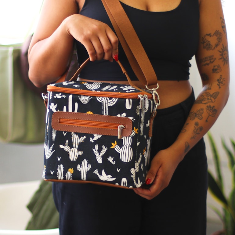 Compacta, prática e super resistente, ela tem uma design super funcional, a Bolsa Térmica Move Cactos Cordel é confeccionada em lona de algodão de altíssima qualidade. Tem uma alça de mão e uma alça transversal para levar refeições e lanchinhos saudáveis no seu dia a dia. Ela é ampla e espaçosa e conta com forro térmico interno, além de vir com fechamento em zíper duplo, com acabamentos em caramelo. Simplesmente maravilhosa! Tudo o que você precisava! Conheça outros produtos da linha e encante-se por ela! Use Mimeria!