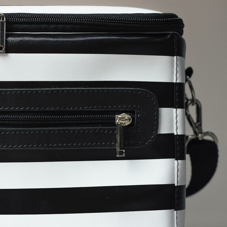Uma térmica linda, moderna e cheia de estilo! A Bolsa Térmica Listrado Preto e Branco é tudo isso e muito mais! Ela é mais do que perfeita para você levar em todos os cenários do seu dia a dia, seja na faculdade, trabalho, academia e onde mais você quiser!