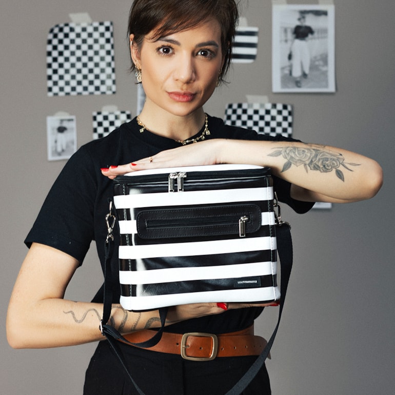 - Bolsa Térmica Move Listrado Preto e Branco;