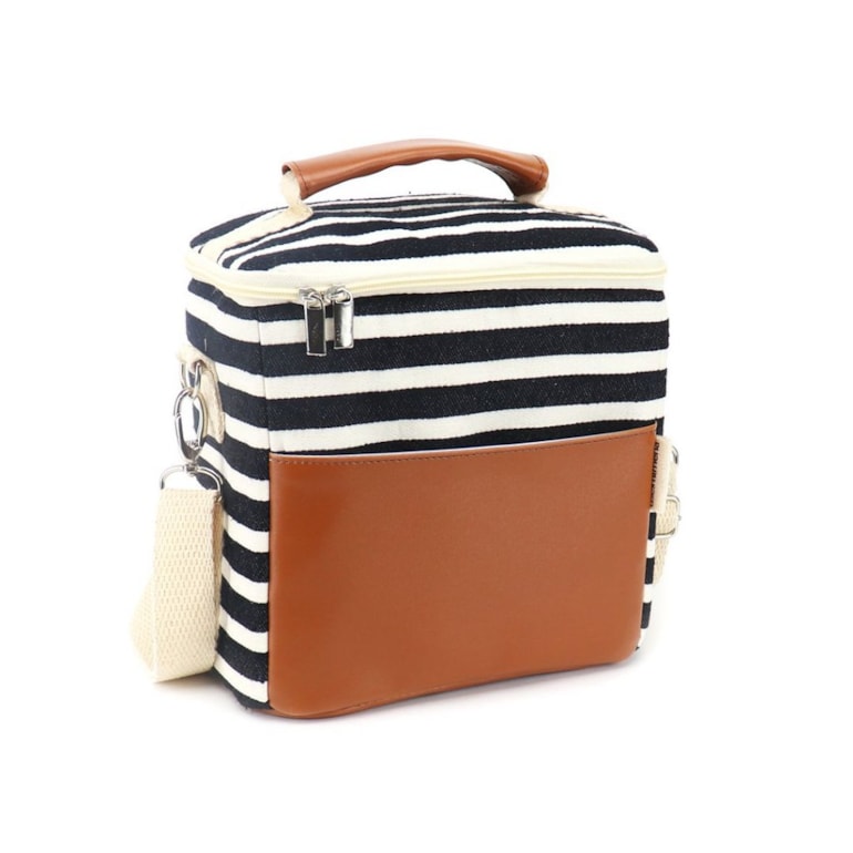 A Bolsa Térmica Move Listras Pretas possui seu fechamento em zíper duplo e conta com um bolso frontal que é ideal para carregar talheres, guardanapos e pequenos objetos! Ela vem estampada com listras neutras em um pretinho básico, contrastadas com listras em tecido cru, tudo isso acrescido de belos detalhes em marrom! É o mimo que você necessitava em todas as suas refeições diárias!