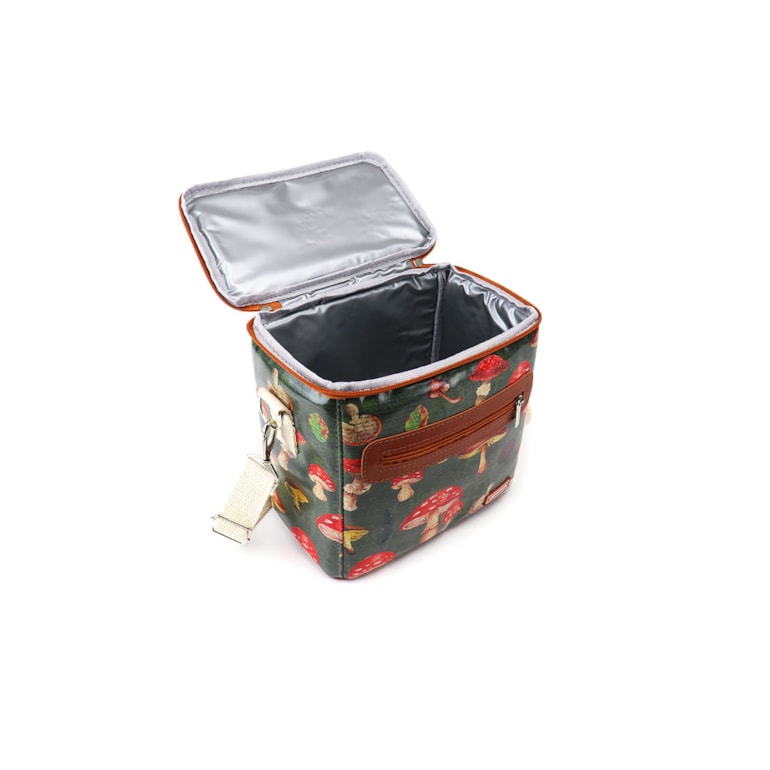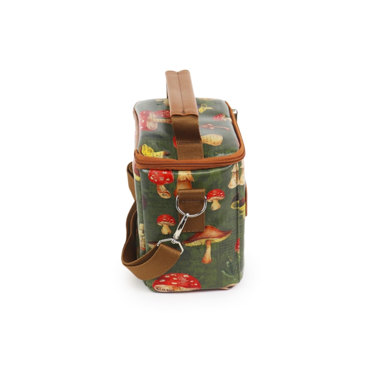 A Bolsa Térmica Move Mini Cogumelos Botanic Bege é lindíssima! Estampada com fundo bege com cogumelos vermelhos e marrons com escritas de jornal com detalhes em caramelo, ela é cheia de charme e muito encanto.